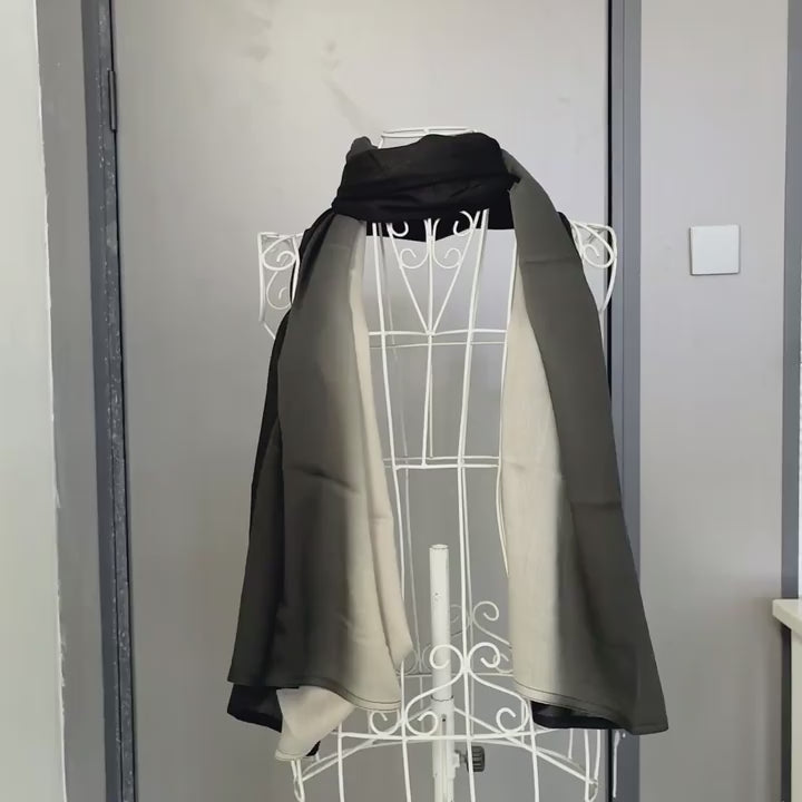 With a double stitched hem, shadow ombre is a modal hijab that transitions from black to a deep forest green and to an off white/grey.